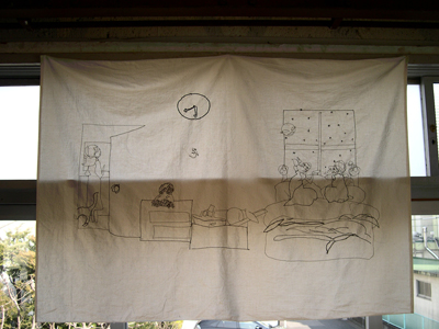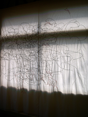 | Quiet --sewing machine drawings-- 「くわいえっと」ミシン素描 2006 thread, cloth 糸、布 |